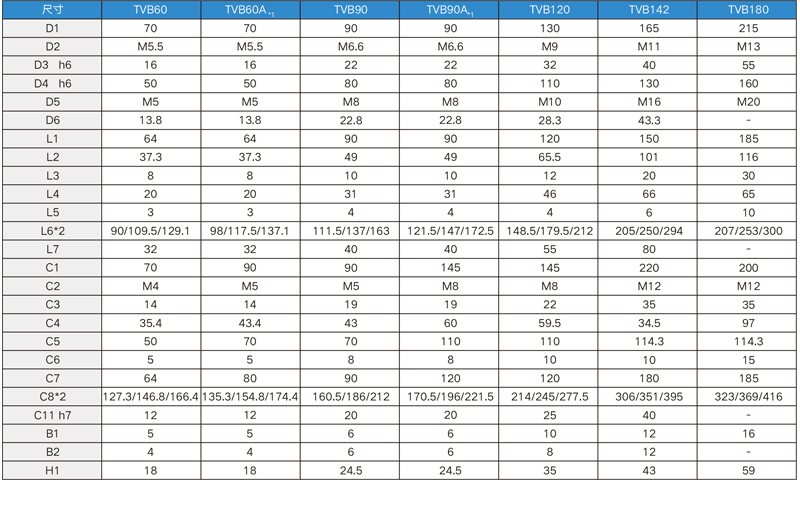 TVB系列性能參數表 / TVB Series Performance Table | ||||||||