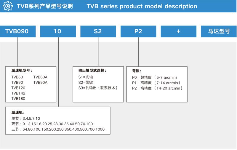 規格 Specification | 單位 Unit | 節數Stage | 減速比Ratio | TVB60 | TVB90 | TVB120 | TVB142 | TVB180 |