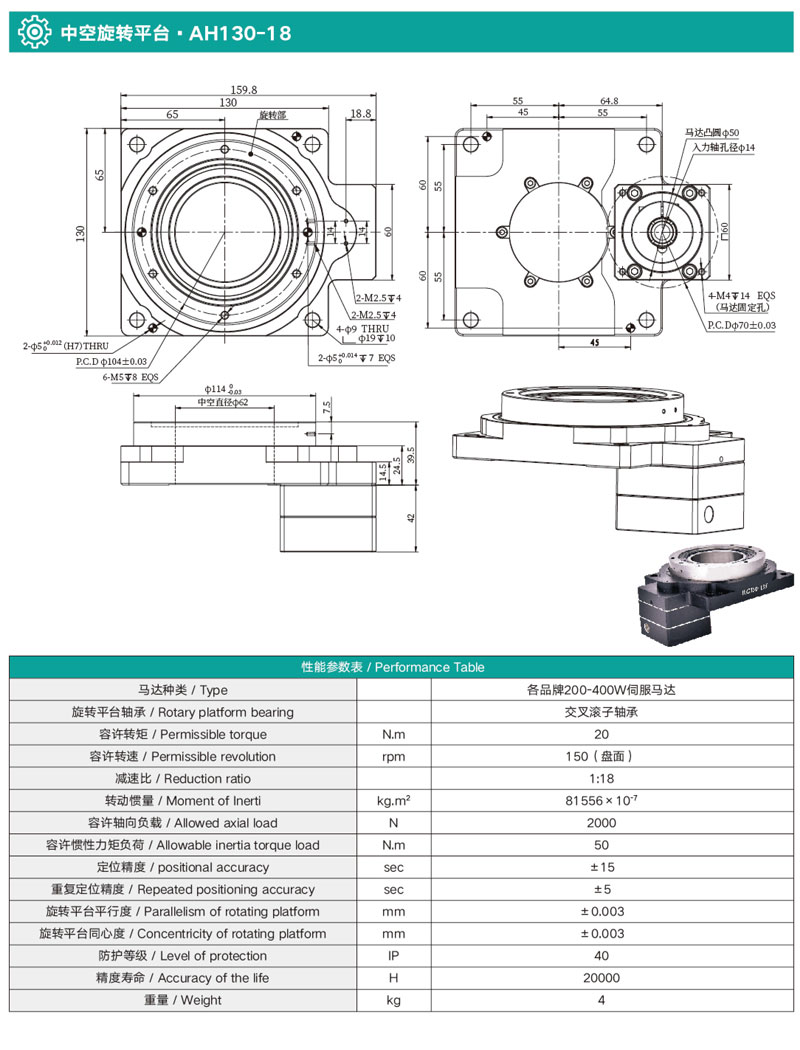 無齒隙,定位精度≤15sec,重復定位精度可達±5sec