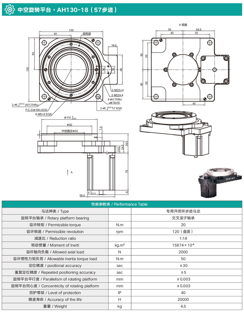 無齒隙,定位精度≤15sec,重復定位精度可達±5sec