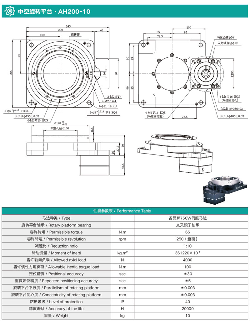 • 中空旋轉平臺AH200-10
