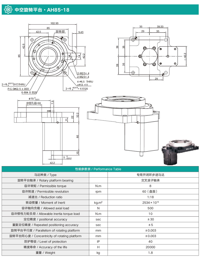 無齒隙,定位精度≤15sec,重復定位精度可達±5sec