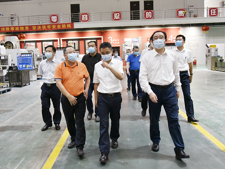 王市長(zhǎng)一行先后走進(jìn)特裝生產(chǎn)車間、再制造及精沖機(jī)維修車間(A1車間),實(shí)地查看一線疫情防控和生產(chǎn)經(jīng)營(yíng)情況,詢問(wèn)了解公司發(fā)展?fàn)顩r,并在A1車間舉行座談,詳細(xì)聽(tīng)取李總的工作匯報(bào)。