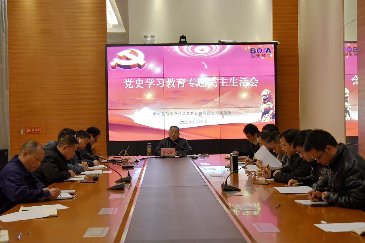 為鞏固拓展黨史學(xué)習(xí)教育成果,教育引導(dǎo)公司黨員干部深入學(xué)習(xí)貫徹黨的十九屆六中全會(huì)精神,深刻認(rèn)識(shí)“兩個(gè)確立”決定性意義,進(jìn)一步提高政治站位、統(tǒng)一思想認(rèn)識(shí)、振奮創(chuàng)業(yè)熱情,助推公司新年度高質(zhì)量發(fā)展。1月22日,公司黨委在總部313會(huì)議室組織召開了黨史學(xué)習(xí)教育專題民主生活會(huì)第一階段會(huì)議。公司黨委書記李總主持會(huì)議,公司黨委委員、各黨支部書記和總監(jiān)以上管理干部參加會(huì)議。