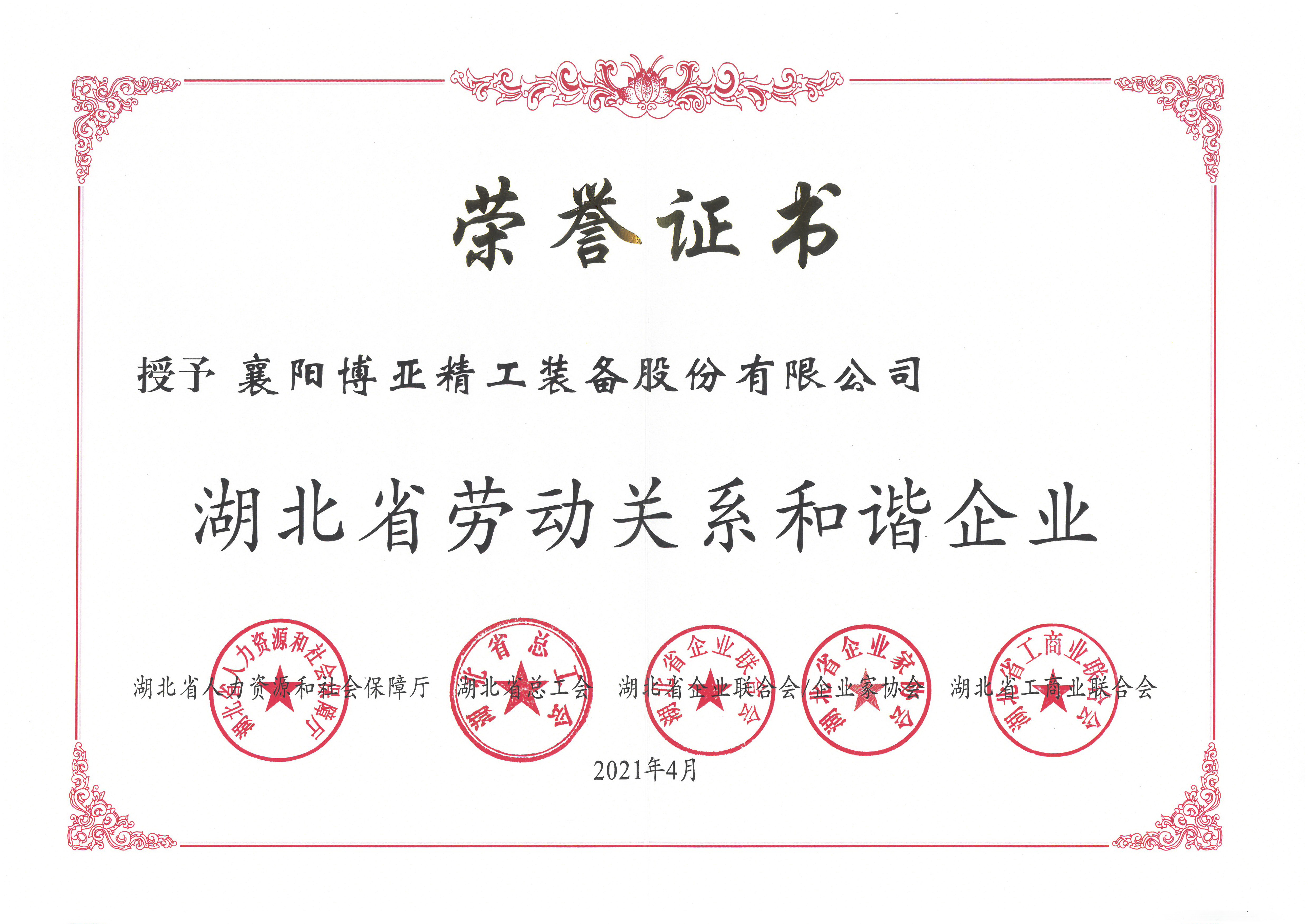 湖北省勞動關(guān)系和諧企業(yè)